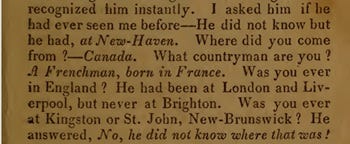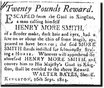Walter knew of other aliases – from a letter written by Wills Frederick Knox in October 1816 – but he only ever reproduced that letter in the second edition of Mysterious Stranger. Wills Knox, whose horse Henry More Smith stole in July 1814, pursued the young criminal from New Brunswick into Nova Scotia. Along the way, Wills noted that Henry assumed different names: “Mead, Coppigate, McDonald, and Henry Moon.” Rather than include this letter in the third edition, Walter simply summarized the account without mentioning any of Henry’s aliases.